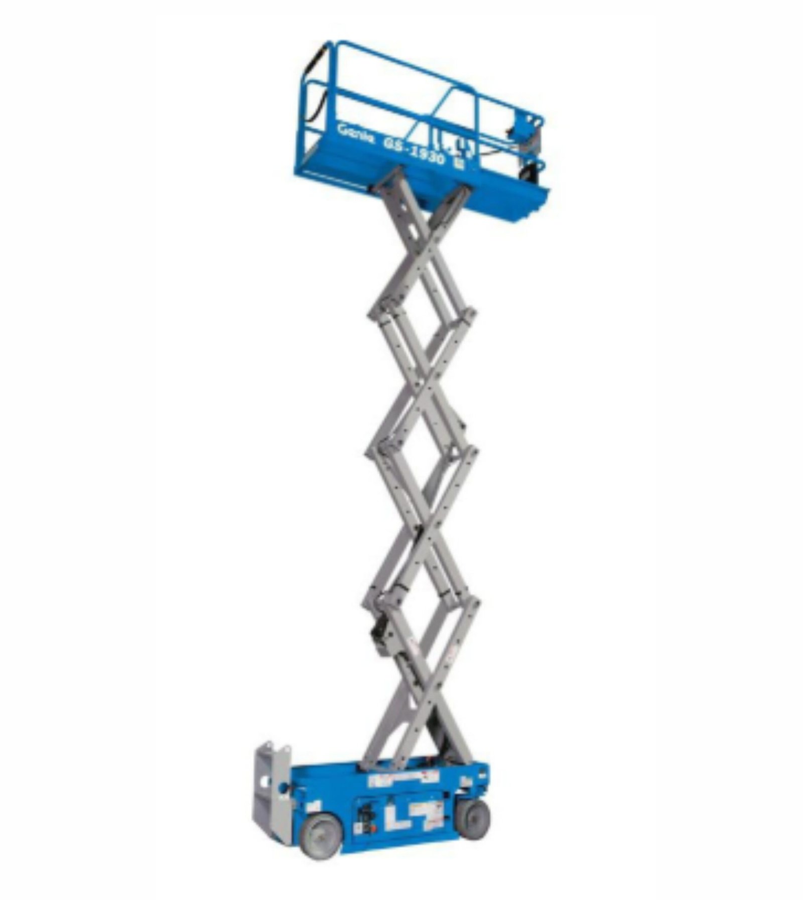 A plataforma pantográfica Genie® GS™-1930 é fácil de manobrar em espaços apertados, tem uma altura de trabalho de 25 ft, apresenta uma operação silenciosa, elétrica, e sem emissões, e é ideal para múltiplas aplicações em superfícies firmes e niveladas, ao ar livre e em ambientes fechados.